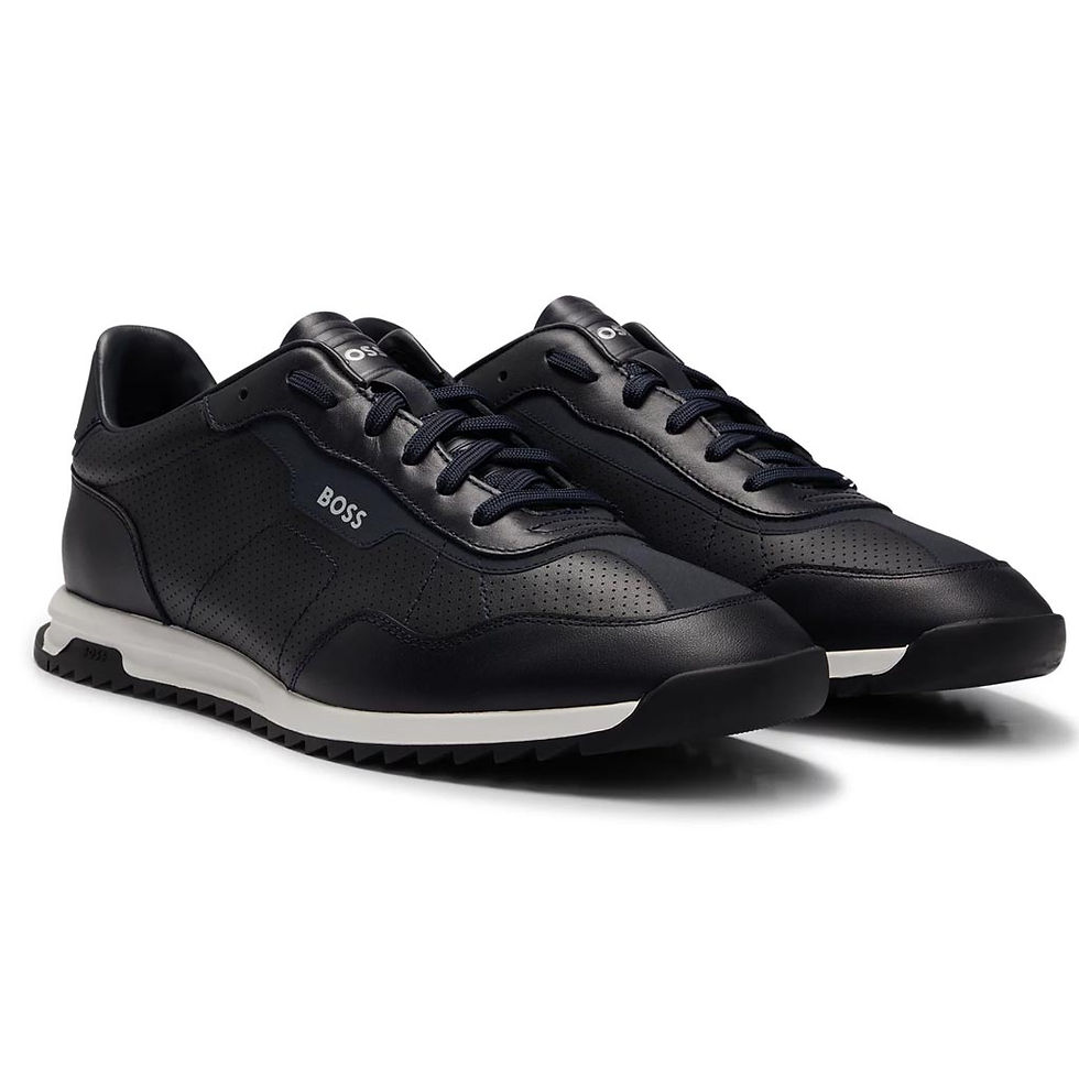 HUGO BOSS Mens Low-Top Trainers in Perforated Leather Dark Navy 41C