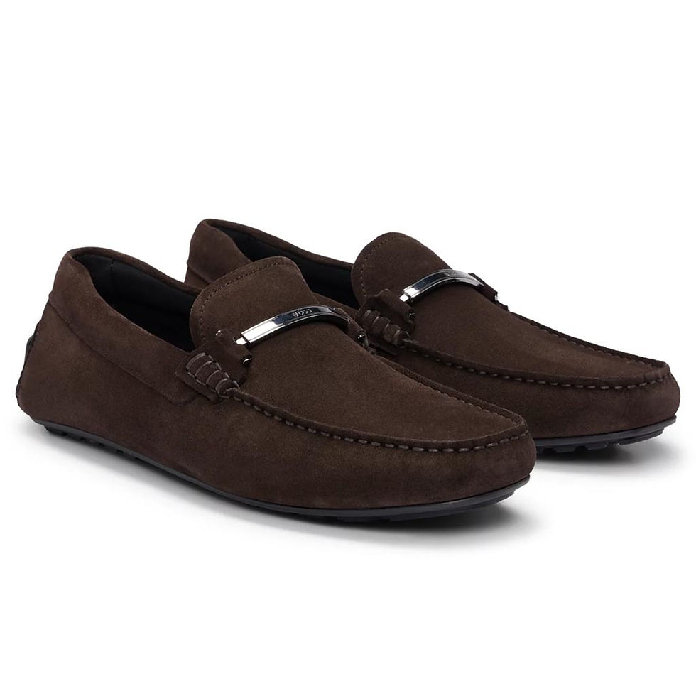 HUGO BOSS Mens Suede Moccasins Dark Brown 40W